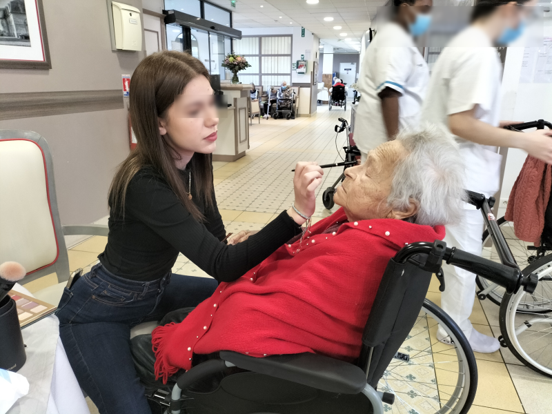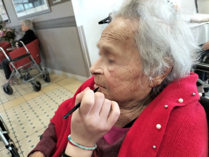 Un atelier soins du visage et maquillage et a été organisé cette semaine par les 2 stagiaires en animation : Jade et Chayneze. Ce moment de relaxation a permis d'effectuer une rupture avec le quotidien institutionnel, a offert une sensation de douceur et de confort grâce au toucher et aux textures.