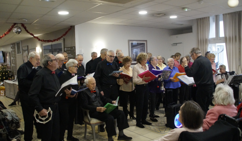 Ce vendredi, nous avons eu le grand plaisir d’accueillir l’association "chansons de la belle époque", venue illuminer notre journée avec la présence de plus de 30 choristes. Leurs voix, portées par des mélodies jouées à l'accordéon, leur énergie et leur enthousiasme ont apporté une véritable bouffée de joie et d’émotions à tous les participants. Un magnifique moment de partage, qui a su égayer notre après-midi et laisser de très beaux souvenirs.