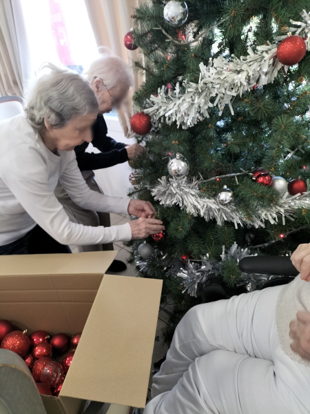 Ce 24 novembre, à un mois exactement de Noël, les résidents ont participé avec enthousiasme à la décoration des sapins de Noël.
