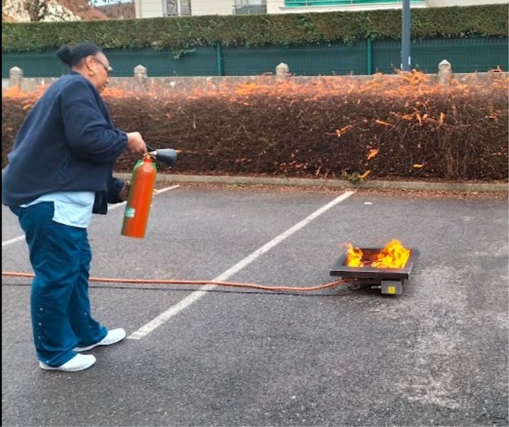 Dans le cadre de son engagement permanent pour la sécurité des résidents et des professionnels, l'établissement des Jardins du Plessis a organisé cette semaine la deuxième partie de la formation annuelle Incendie annuelle destinée à l'ensemble de son personnel. Cette session a été spécifiquement axée sur l’utilisation des extincteurs :