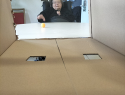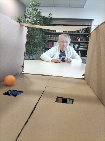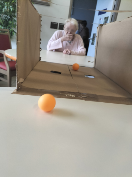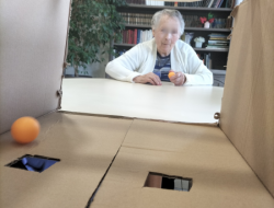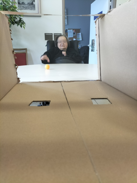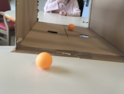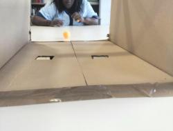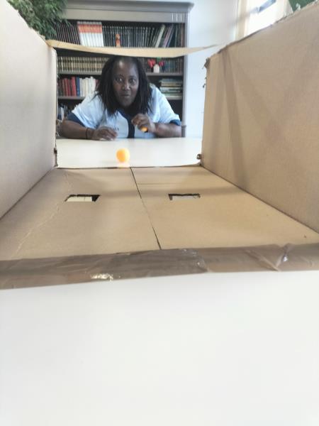 Un dispositif fait maison : des balles de ping-pong, un carton avec deux trous… et un duel redoutable !