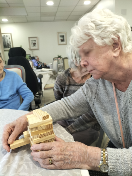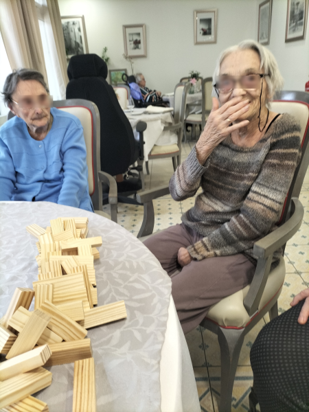 Nous avons inauguré un nouveau jeu avec les résidents : le jeu de la Tour infernale, un jeu simple et convivial.