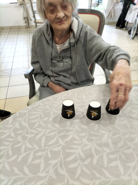 Lors d’une matinée, nous avons partagé un moment de jeu autour du bonneteau avec les résidents.