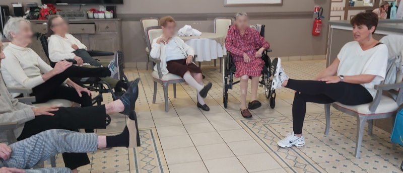 La gym douce a lieu tous les jeudis à 10h en salle à manger et à 11h pour les résidents de l'unité protégée. Elle permet d'agir sur le maintien et le développement de l'autonomie chez les personnes âgées, la gym douce est organisée pour préserver la santé de nos résidents. C'est une pratique qui englobe à la fois le bien-être physique et mental.