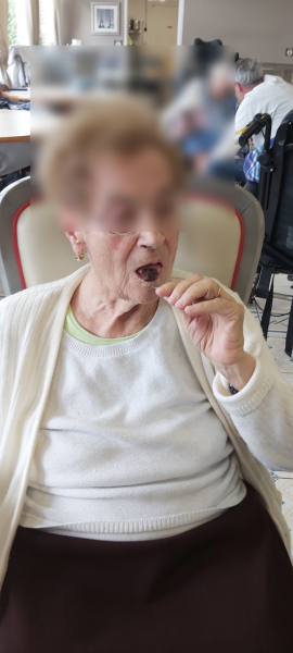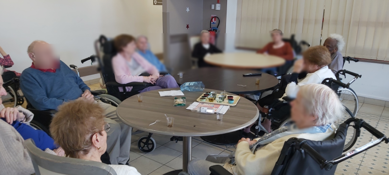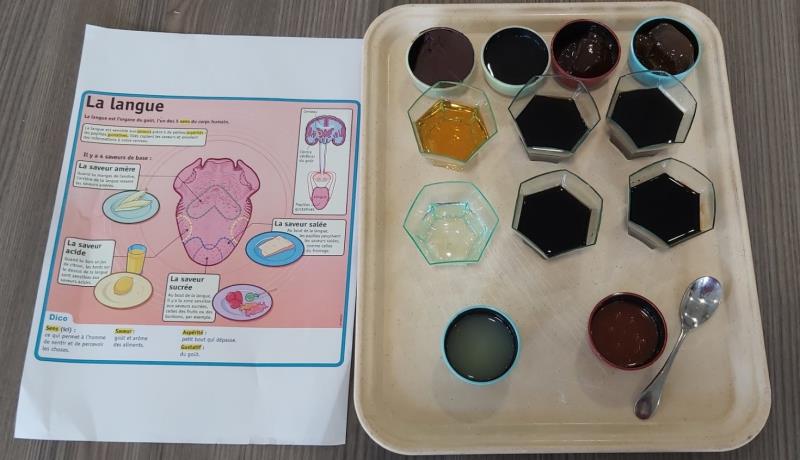Dans le cadre de la semaine du gout, j'ai proposé aux résidents un jeu sur les saveurs et reconnaissance des aliments. L'activité a commencé avec un rappel des 4 saveurs avec la présentation d'un schéma de la langue et de ses différentes parties qui captent chaque gout. Tous ont participé, et se sont exprimés sur les saveurs. Un agréable moment, qui nous a tous amusé . Les ingrédients étaient : Chocolat, miel, fraise, abricot, vanille,caramel,fleur d'oranger, vinaigre balsamique, café nature et sucré, citron et .... tabasco !! 😝 Matériel utilisé : bâtonnet pour saveurs fortes, cuillères jetables, petits pots jetables afin de veiller à l'hygiène.