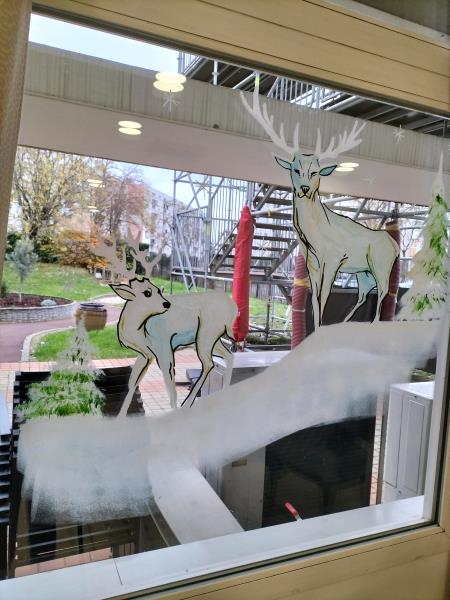 Le froid s’installe et Noël approche ! Pour apporter une touche de magie à cette saison, un artiste professionnel est venu peindre les vitres de l’établissement.
