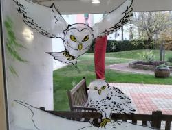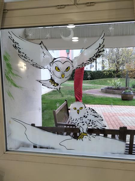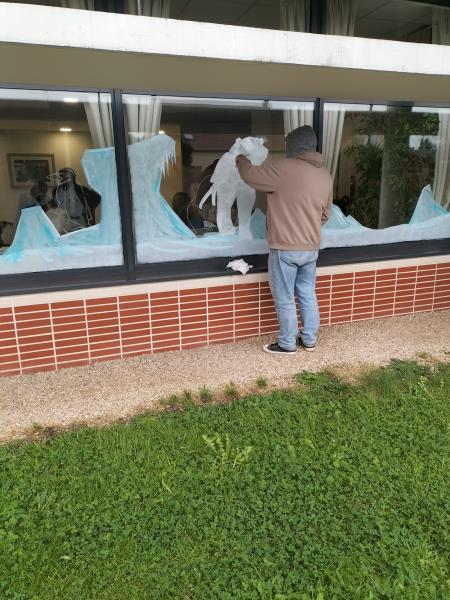 Les résidents ont choisi eux-mêmes le thème des dessins : Noël, la nature et les animaux en hiver. Andy, le peintre, a réalisé de magnifiques décorations pour donner vie à leurs idées.
