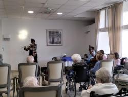 Elle se déroule cette année du 6 au 12 octobre autour de différents types d'activités proposées par les collectivités locales, le réseau associatif et les établissements médico-sociaux. L'idée est de favoriser le lien social, d'encourager les rencontres et de mettre au centre les personnes concernées. Aux Jardins du Plessis, la Semaine Bleue a commencé en musique avec un magnifique récital de flûte traversière qui a su traverser différents styles musicaux, du classique au jazz, en passant par la bossa nova. Un véritable voyage musical qui a enchanté les résidents. La Semaine se poursuivra par un atelier d'écriture de poésies et de lecture collective des poèmes écrits, avec un atelier inédit de boxe, l'accueil du public habituel de la ludothèque municipale au sein de l'EHPAD afin de favoriser les rencontres intergénérationnelles autour du jeu, la participation à un bal organisé par la mairie de Ste Geneviève des Bois.