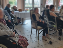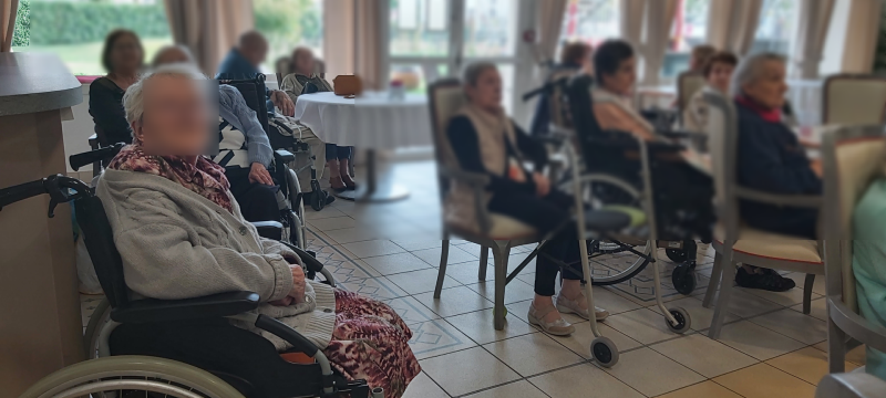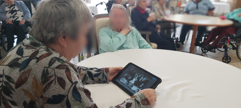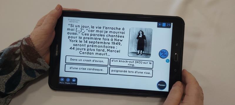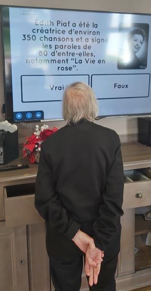 Nos ainés se réunissent atour d'un quiz Wivy sur le thème d’Édith Piaf. Le jeu est agrémenté par des morceaux musicaux. Alors, nombreux sont les résidents qui chantonnent.