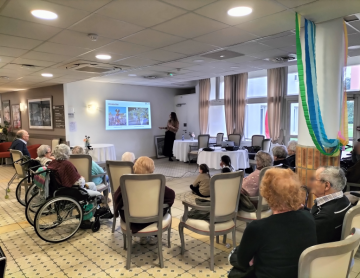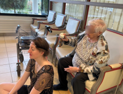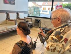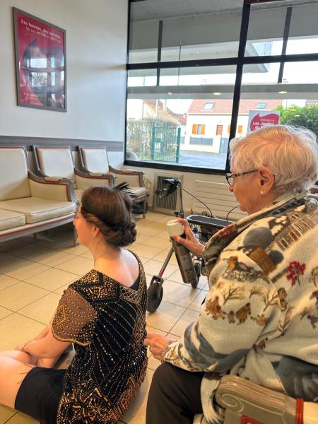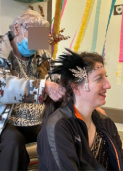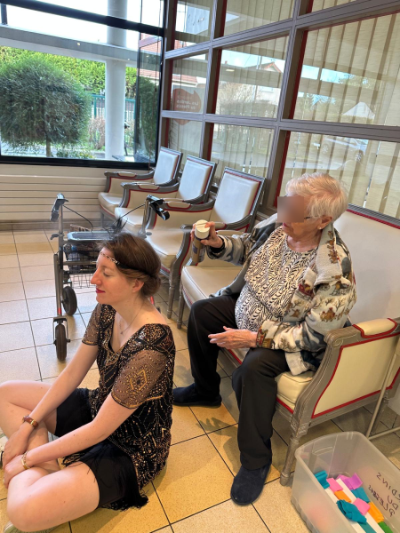 Nous avons eu la chance de pouvoir compter sur les talents d’une résidente, qui, ancienne coiffeuse, a très gentiment proposé de nous coiffer, en accord avec nos déguisements. Avec plaisir et bonne humeur, elle nous conseillés et pris soin de nous, tout en partageant quelques souvenirs de son ancien métier. Un vrai beau moment de partage qui a vu les rôles s'échanger et qui a mis à l’honneur le savoir-faire de Mme C. !