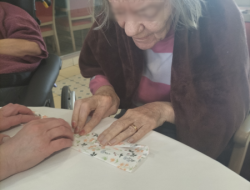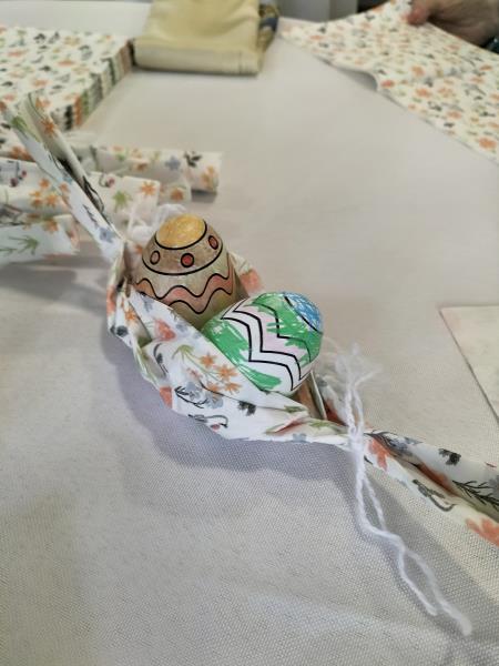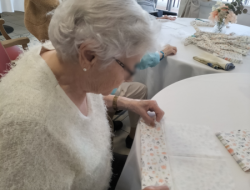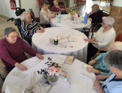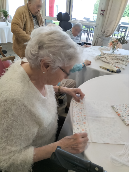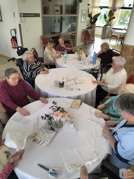 Les résidents ont participé à un atelier de création d’origamis autour du pliage de serviettes. Ensemble, ils ont appris à créer des petits paniers destinés à être garnis de chocolats à l’occasion de Pâques.
